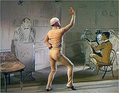 David, seen from behind with his palms pointing out, recalling similarly staged depictions of Jesus in biblical epics of the fifties like Quo Vadis (1951) and Ben-Hur (1959), where Jesus' face is given power by its absence from the frame.