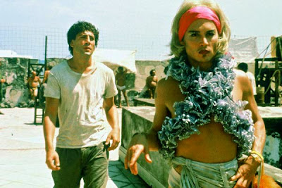 Here is an explicit framing of the two diametrically opposed men by the stadium bleachers, with David's past playing out behind them in the form of a football game at the stadium he guards. Once an active participant in the game, he is now an outsider relegated to overseeing its fans on the fringes.