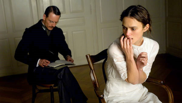 On the face of it, David Cronenberg's A Dangerous Method, based on the play "The Talking Cure" by Christopher Hampton, seems like the perfect vehicle for the director's cerebral approach. In his films, Cronenberg is often accused of a detached, almost clinical, method of eliciting drama from circumstances in which the body turns on itself, i.e., The Brood, The Fly, and even less fantastic stories like that of Dead Ringers. So, at first glance, this story depicting the nearly filial relationship between Sigmund Freud (Viggo Mortensen) and his protege, Carl Jung (Michael Fassbender), and its eventual rupture over their contrasting approaches to mental illness, seems like the perfect marriage of artist and material.