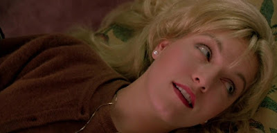 Laura, on the other hand, is a fully fleshed-out human being. Had Fire Walk with Me been a different kind of film, not a horror film burdened with living up to the expectations of fickle fans (like myself, admittedly), perhaps Lee might have even been in contention for a more prominent award than the Independent Spirit she was justifiably nominated for. Lynch depicts the incandescent Laura in various harrowing ordeals. Some start from an erotic standpoint, but Lynch then subverts our expectations. For instance, in the Pink Room scene, where Laura is forced to allow her naïve friend Donna (Moira Kelly) to tag along on what is essentially an out-call at the Road House, the lurid promise of nudity and eroticism is immediately sabotaged by the squalor of the noisy bar. Percussive industrial music plays so loudly over the scene that it’s subtitled, while the men who solicit Laura look like grimy lumberjacks. The club’s strobe lighting aptly transforms Laura’s seductive dancing into the herky-jerky movements of a marionette. And Lynch tops it all off with an insert of the disgusting barroom floor strewn with cigarette stubs and ash. Each time we’re made privy to Laura’s circumstances, Lynch and Lee remind us Laura is not the shallow Madonna/Whore cipher she was on TV. She’s an active participant her own murder mystery, laying all the groundwork for Cooper’s case in her diary. She protects relative innocents like her two lovers, Bobby (Dana Ashbrook) and James (James Marshall), and her best friend Donna from getting mired in the same existential quicksand she finds herself in. Because of how Lee performs them, scenes previously only spoken about on the TV series gain new dimensions when we finally see them for ourselves. High on coke during a drug deal gone bad, Laura’s initial shock at Bobby murdering the dealer gives way to an unstoppable case of the giggles as she confuses the dead man with Bobby’s best friend Mike, whom he bears not the slightest resemblance to. And the disgust with which Laura treats the kind James at the intersection of Sparkwood and 21 speaks to her resentment that even this rebellious biker has managed to preserve more of his virtue than she ever had the opportunity to in herself.