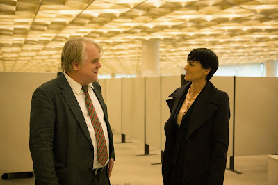 Tinker Tailor luxuriated in profiling Gary Oldman's careful delineation of spymaster George Smiley, sometimes to a fault as anyone who saw the convoluted film can attest to. But Hoffman's take on the jaded Bachmann could easily rival Oldman's Oscar nominated performance in Tinker Tailor. There is a weariness to the hunched, ill-dressed Bachmann that is no doubt informed by Hoffman's personal travails (which we now have an inkling of). But Bachmann also carries a glint of Hoffman's mischief and idealism. The pressure is heavy on this secret agent to play nice with the local authorities and provide them with someone to arrest. Still, Bachmann unswervingly plays a larger game, one that will prove more fruitful to anti-terrorist espionage units over time. When Hoffman is on screen, his Bachmann eclipses anyone else, a considerable achievement given the movie's formidable company of players.